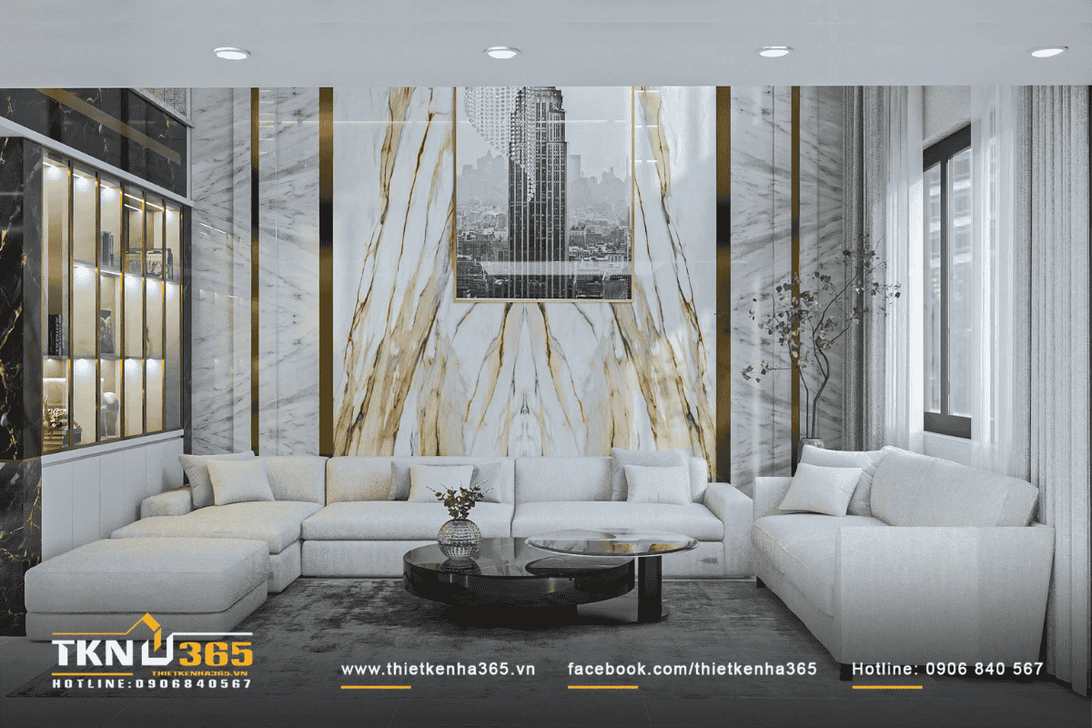 Ngôi nhà của anh Đại được thiết kế theo phong cách hiện đại, tập trung vào sự tiện nghi và thẩm mỹ cao. Tầng trệt được bố trí là nơi để ô tô và tiếp khách, gây ấn tượng mạnh mẽ với bức tường ốp nhựa giả đá sang trọng, kết hợp hệ thống đèn vàng ấm áp, tạo không gian tiếp khách ấm cúng và đẳng cấp.
